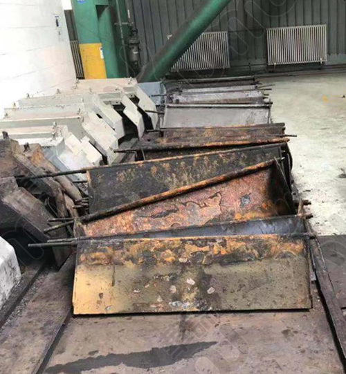 改善前:工作輥護板直接擺放在檢修區(qū),擺放時直接用鋼絲繩或吊帶吊到鐵板上平放,擺放時容易倒落,曾出現(xiàn)過腳部砸傷事故,存在很大安全隱患。