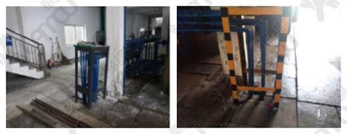 工業(yè)廢水出口監(jiān)測點無護欄,存在安全隱患。