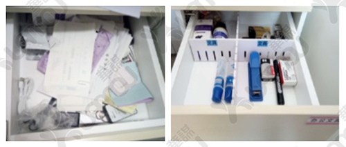 抽屜內(nèi)物品雜亂無章,不易尋找需要的物品。