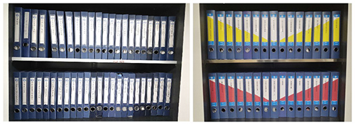 以科室為單位,科主任帶頭,全員參與,按照6S管理的思想,清理不要物,規(guī)范必須物品的定點、定容、定量。進而實現(xiàn)目視化管理,提高工作效率。
