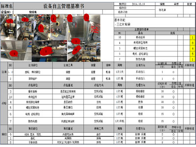 設(shè)備基本條件整備優(yōu)化擦拭(清掃)緊固(點(diǎn)檢)注油(潤(rùn)滑)實(shí)施,形成員工可遵守自主管理基準(zhǔn)。 -