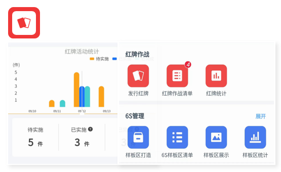 支持樣板區(qū)打造、6S基準卡、紅牌作戰(zhàn)、維持管理等多種活動