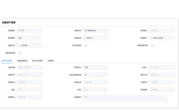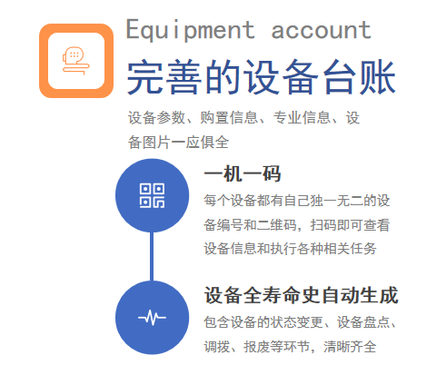 包含設備臺賬、設備BOM、設備盤點、調(diào)撥、報廢等功能,覆蓋設備全生命周期
