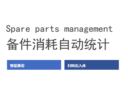 備件庫存管理、預警,備件出庫、入庫、退庫、下機件管理,自動統(tǒng)計費用,優(yōu)化備件費用。