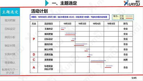 - 1: QCC組成部門級別、班組級別的品質(zhì)圈,選定主題,協(xié)調(diào)各方資源對問題進(jìn)行小組改善。